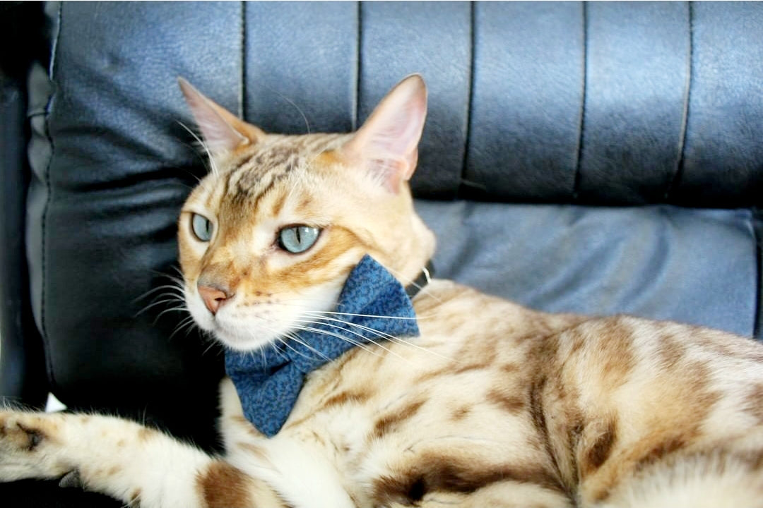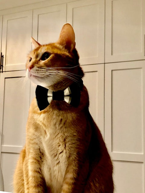 Agrémentez le joli cou de votre animal avec ce superbe nœud papillon fait de tissu recyclé. Faites parler l’élégance de votre animal!
